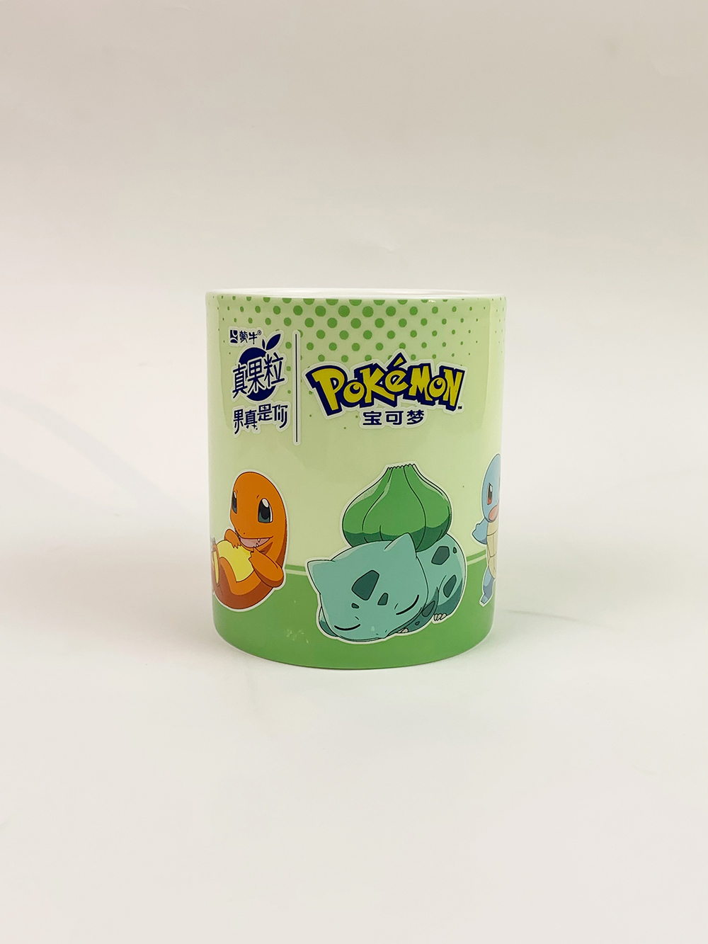真果粒是蒙牛集團推出的全球首款含有可嚼果粒的新一代牛奶飲品。2006年就已經首創成功并推向市場。作為中國乳業的龍頭,蒙牛始終堅持自主創新的原則,積極探索著更適合中國人身體膳食結構的營養飲品,面對全球30%以上人口維生素等營養缺乏及亞健康狀態的困擾,蒙牛組織各方專家綜合探討,得出最行之有效的方案即是通過合理的膳食來改善營養狀況,尤其是多吃富含維生素的水果、多喝牛奶,更進一步提出了“真實果粒+純鮮牛奶”的大膽構想,真實就是真果粒。蒙牛集團找到我們,想要定制一款關于真果粒與寶可夢聯動的杯子,經過不斷地設計調整,最終選定,下面是產品的實拍圖: