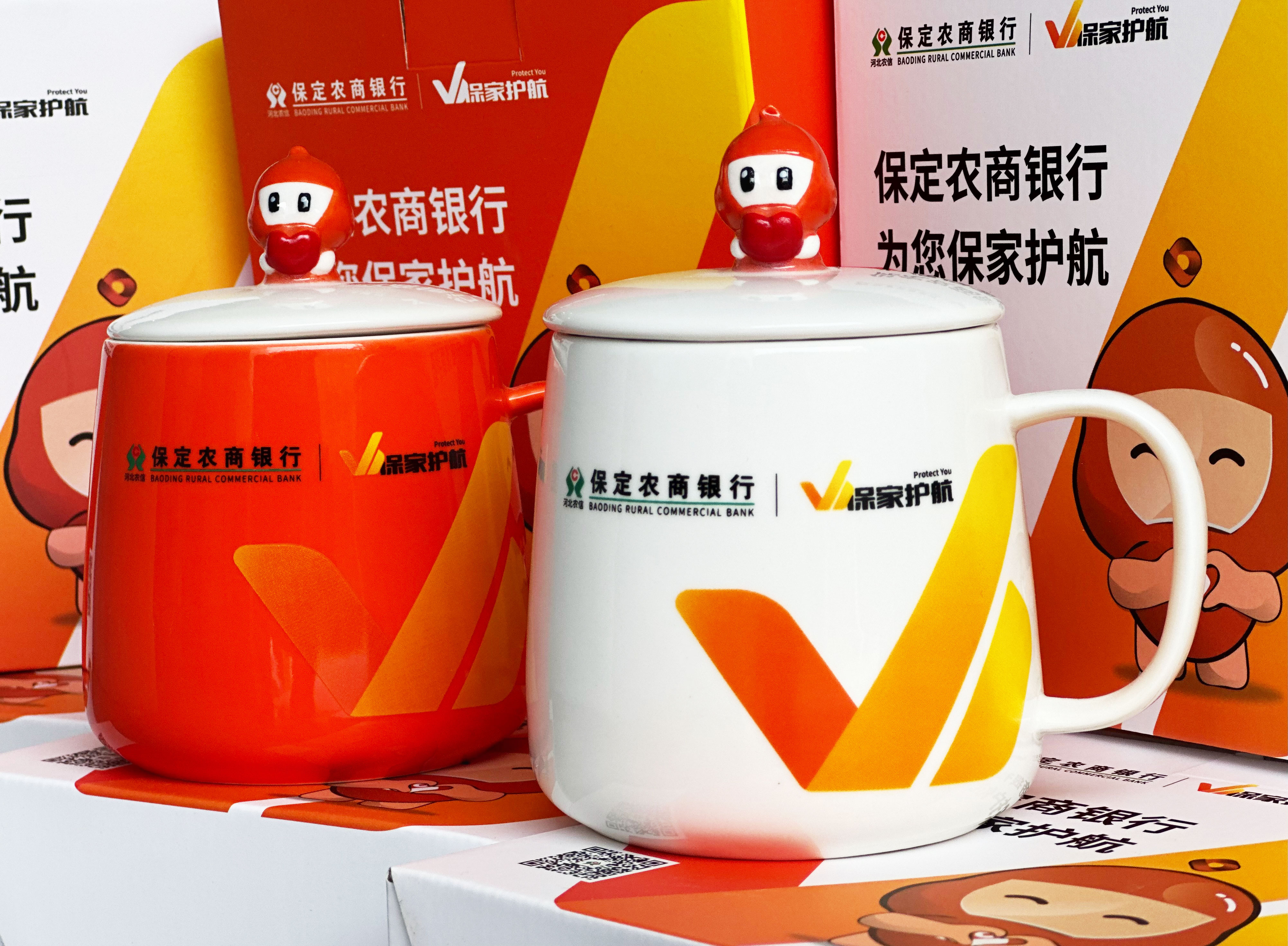 河北保定農村商業銀行股份有限公司成立于2007年1月29日,前身為保定市市區農村信用合作聯社,2019年1月28日正式改制組建為地方性股份制商業銀行,總部位于保定市天鵝中路177號 ,定位為服務三農、城區及中小企業,依托京津冀協同發展和雄安新區建設契機推動地方經濟發展。農商銀行找到我們,想要定制一批杯子,經過不斷設計調整,最終選定,下面是產品的大貨圖: